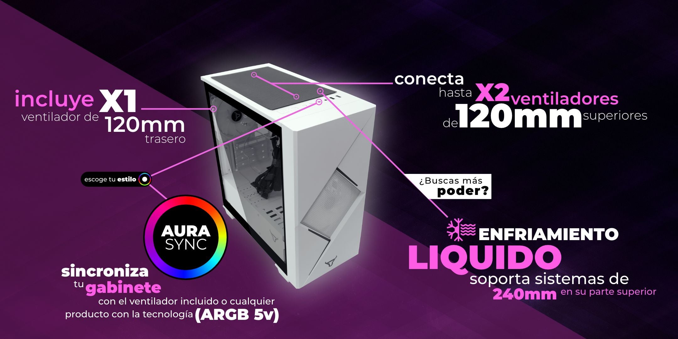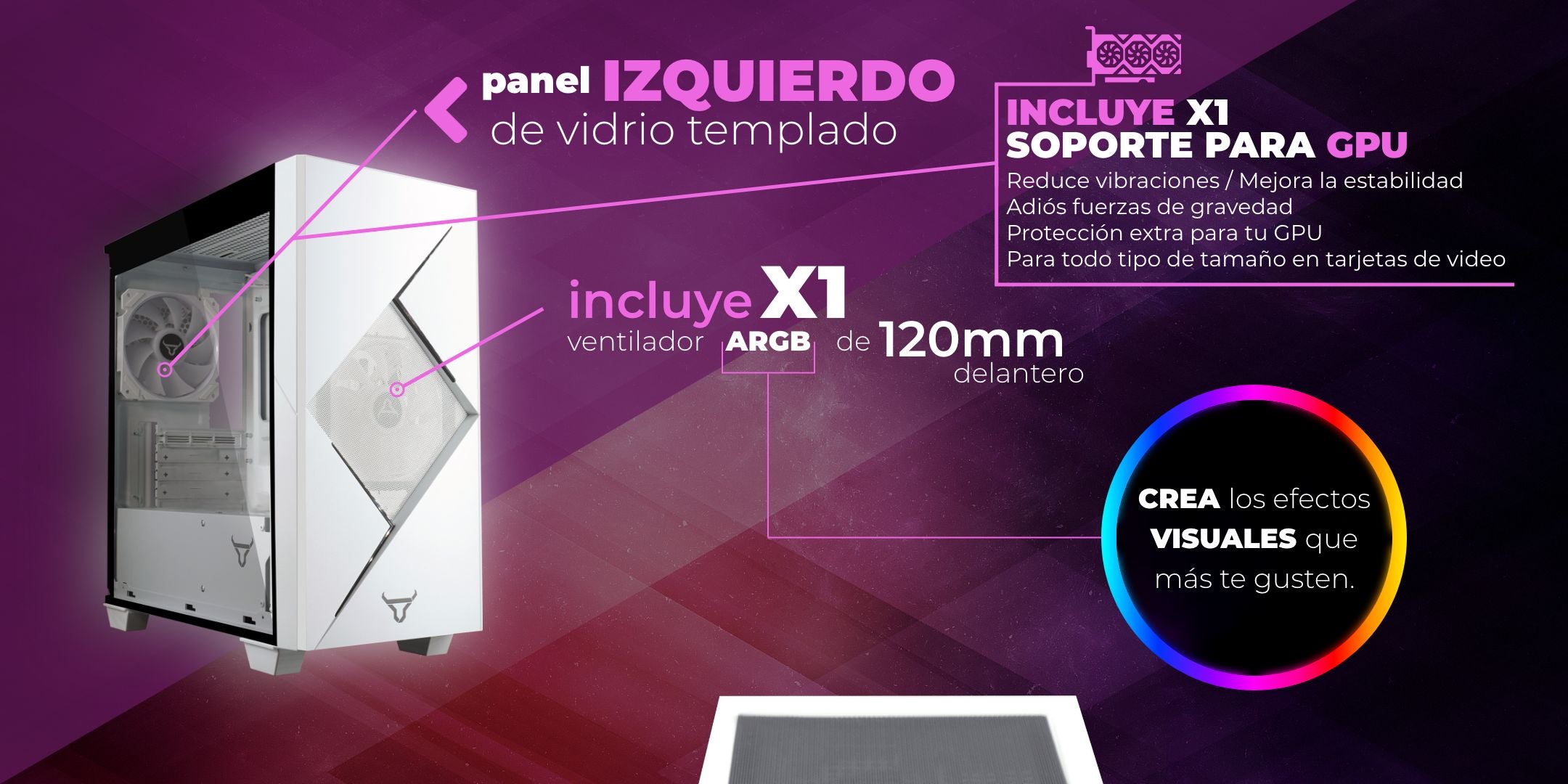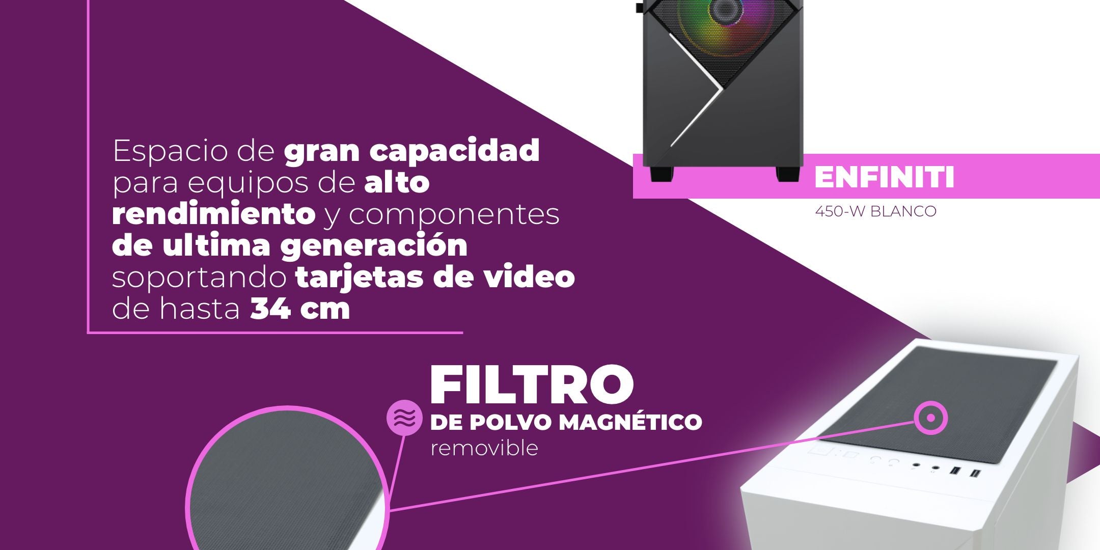 Con el Gabinete Micro ATX / ITX Tower ENFINITI, encontrarás un diseño minimalista con estructura unibody que envuelve sus paneles laterales de cristal templado de alto calibre. Sin dejar pasar de lado su panel frontal y superior fabricado de una robusta pieza de 0.60 - 0.80 mm de grosor, aumentando su estética y minimalismo por completo controlando la iluminación de tu equipo gracias al controlador ARGB integrado con botón de administración en panel frontal y compatibilidad con la sincronización de tu motherboard (ARGB 5V). El gabinete ENFINITI sabe que el TAMAÑO IMPORTA, Su gran tamaño lo hacen ideal para instalación de sistemas de enfriamiento liquido de alto desempeño soportando radiadores de hasta 240 mm. Aparte ahora cuenta con un fuente Batauro 450W 80 PLUS Bronze para poder sumistrar la energia necesaria a tus componnetes y asi tener un gabiente super completo para diferentes entornos.