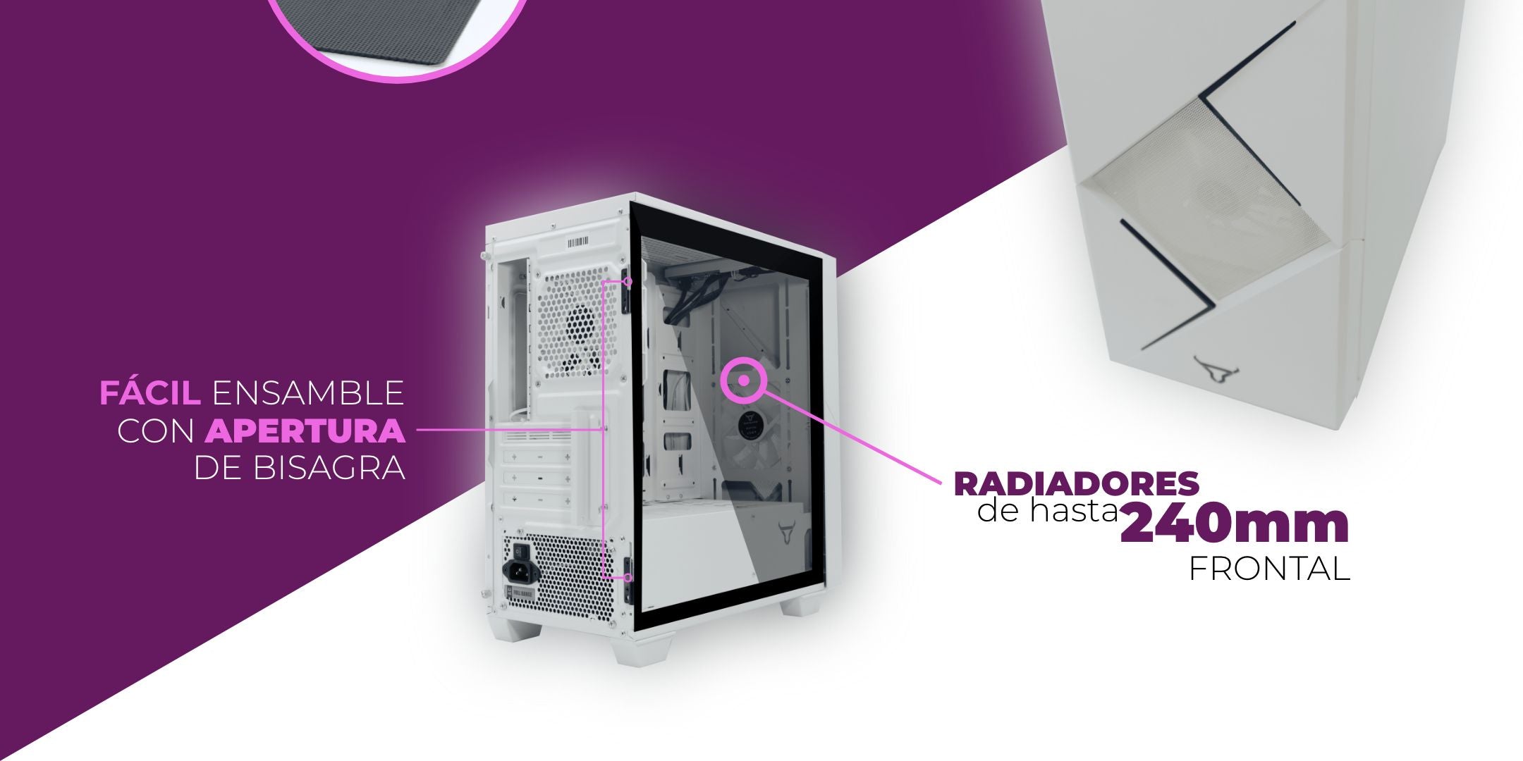 | Diámetro de ventiladores frontales soportados | 120 mm |