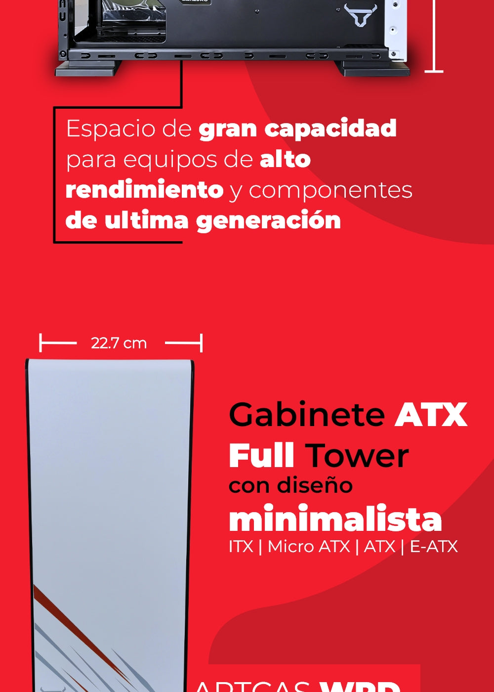 Espacio de gran capacidad para equipos de alto rendimiento y componentes de ultima generación.