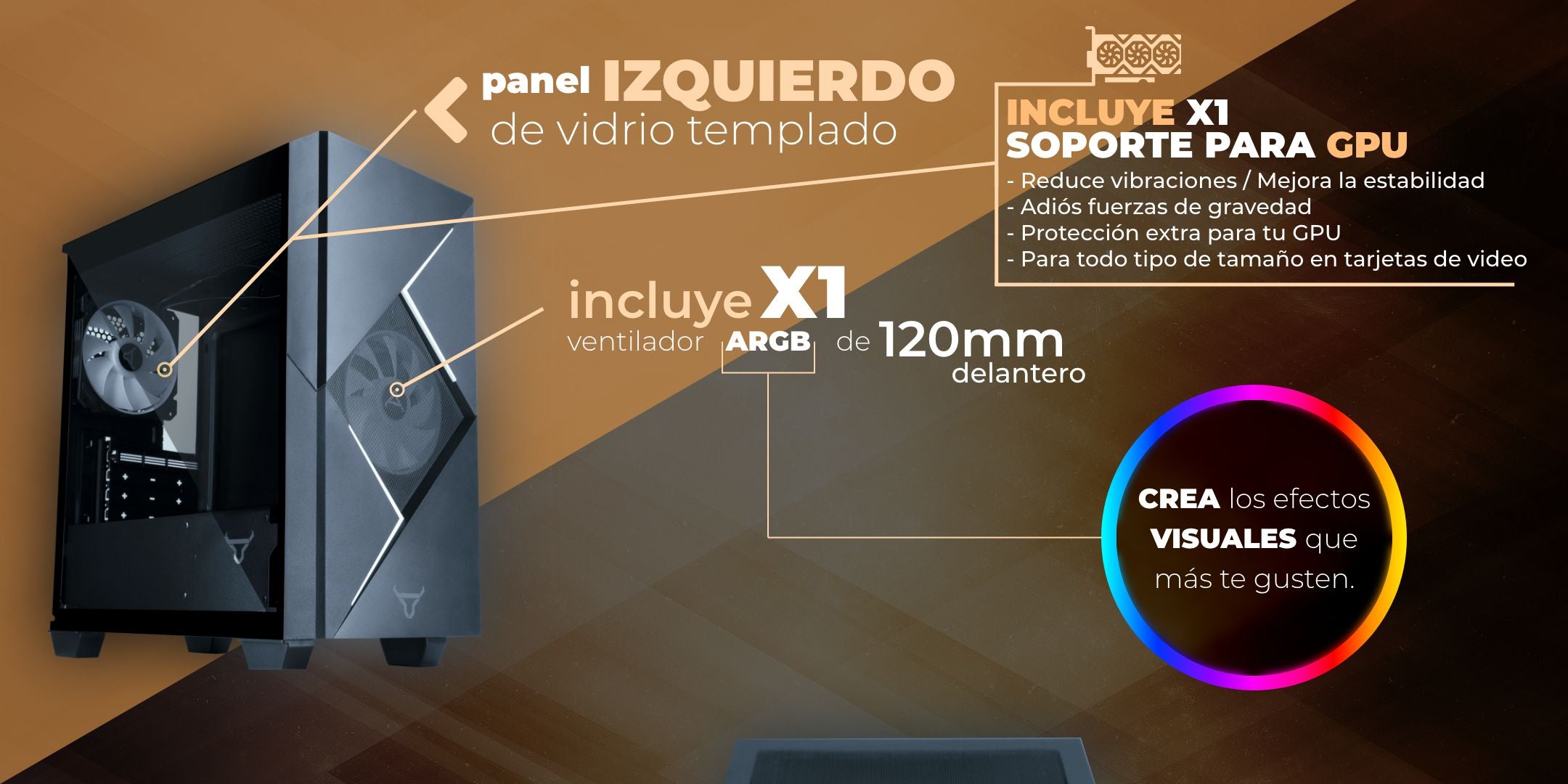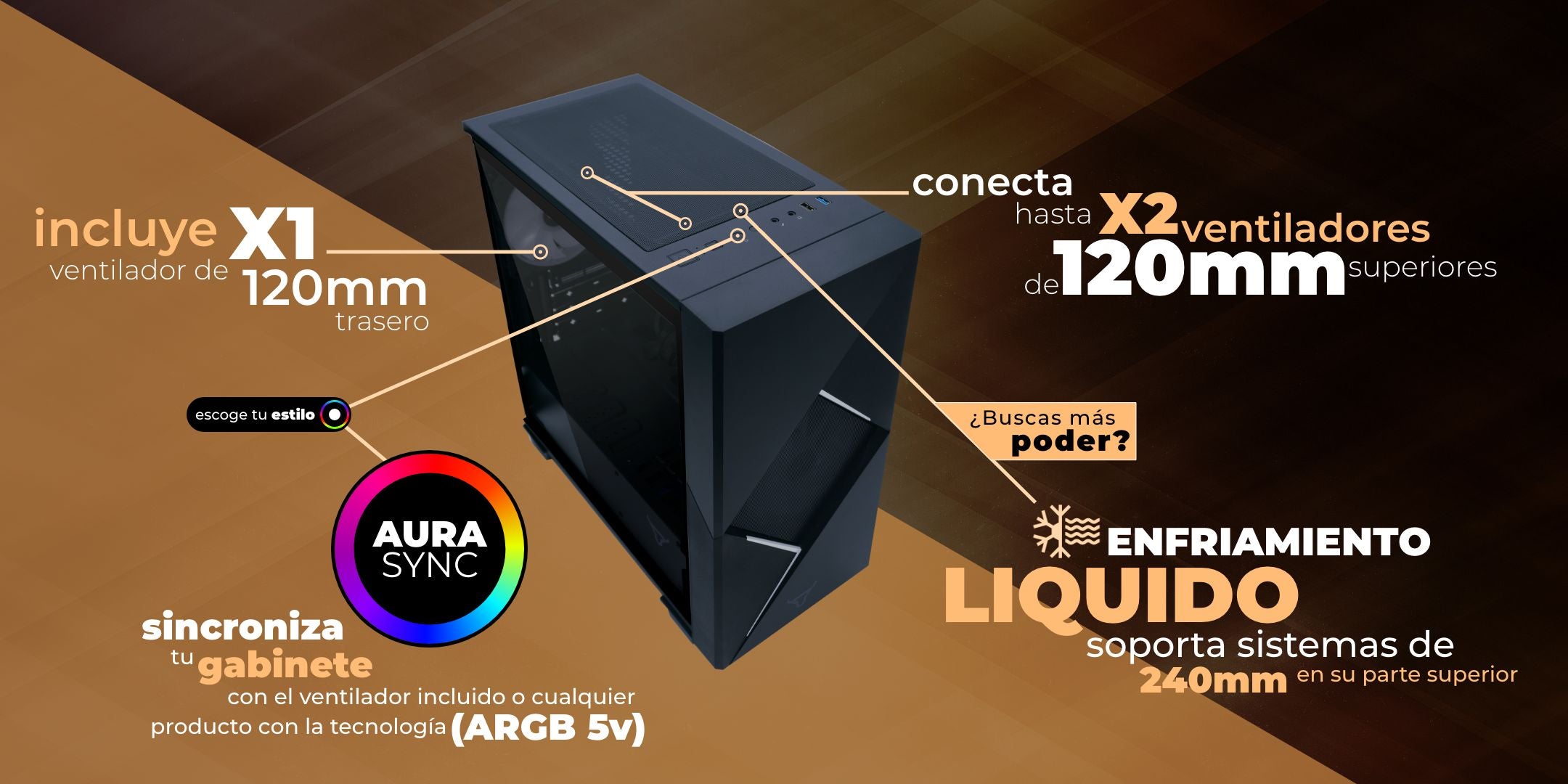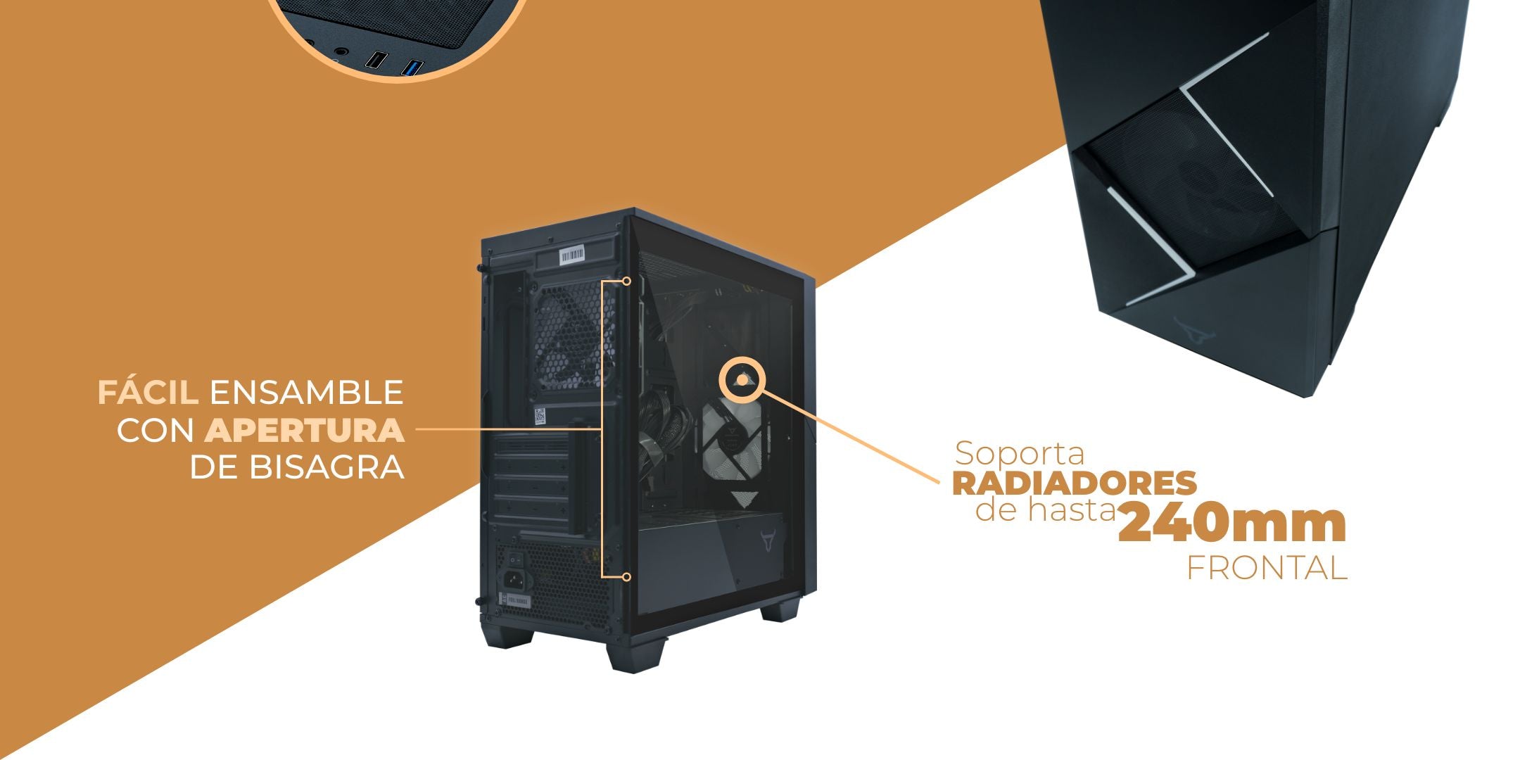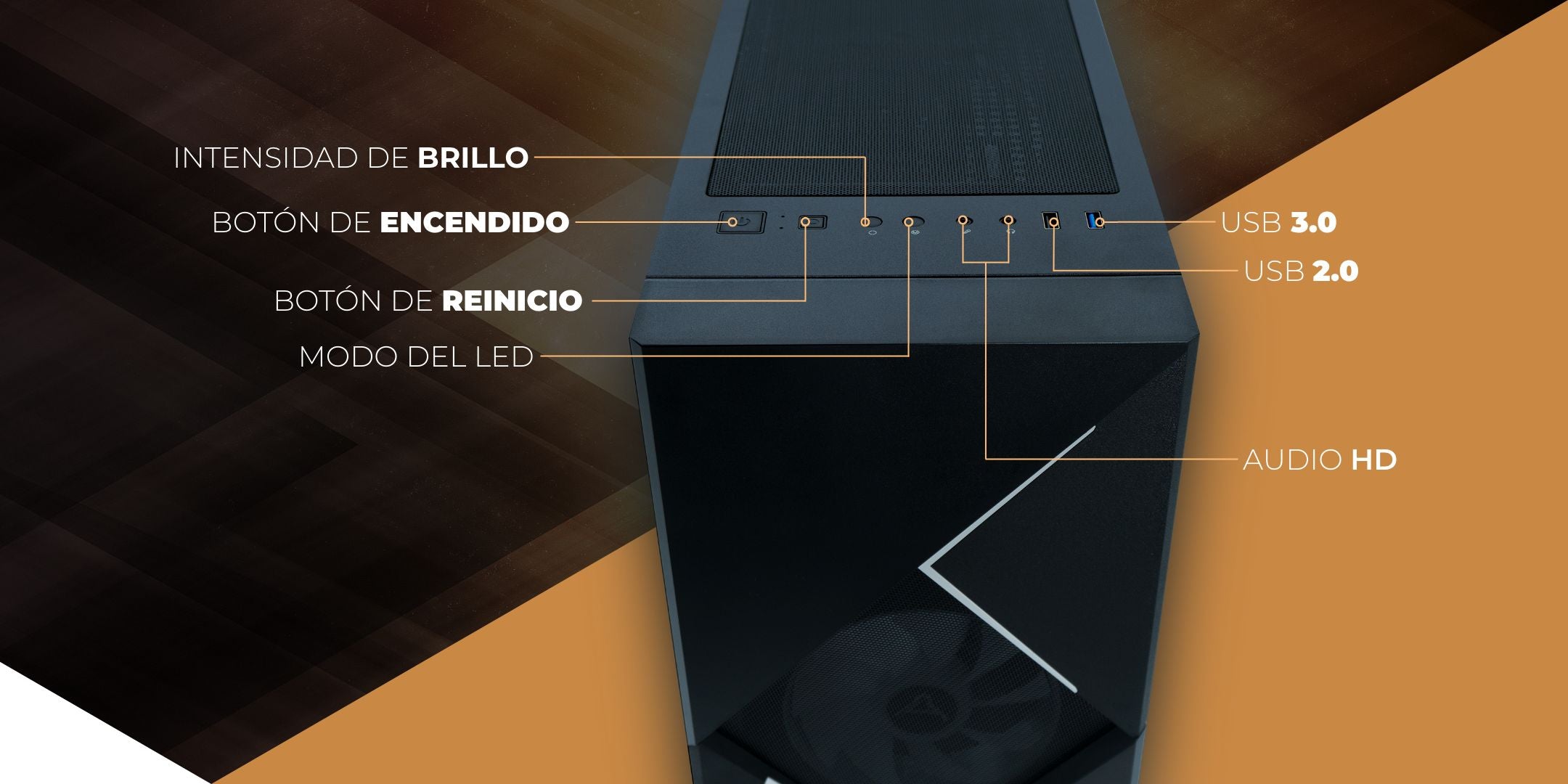 | Diámetro de ventiladores frontales soportados | 120 mm |