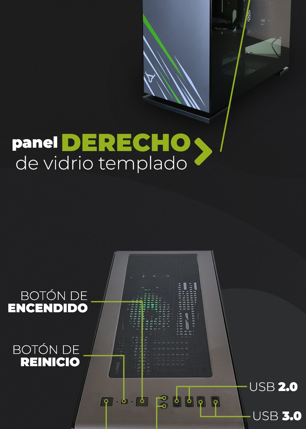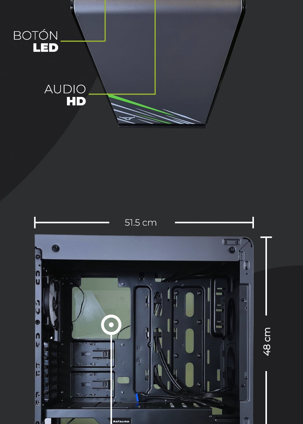 Espacio de gran capacidad para equipos de alto rendimiento y componentes de ultima generación.