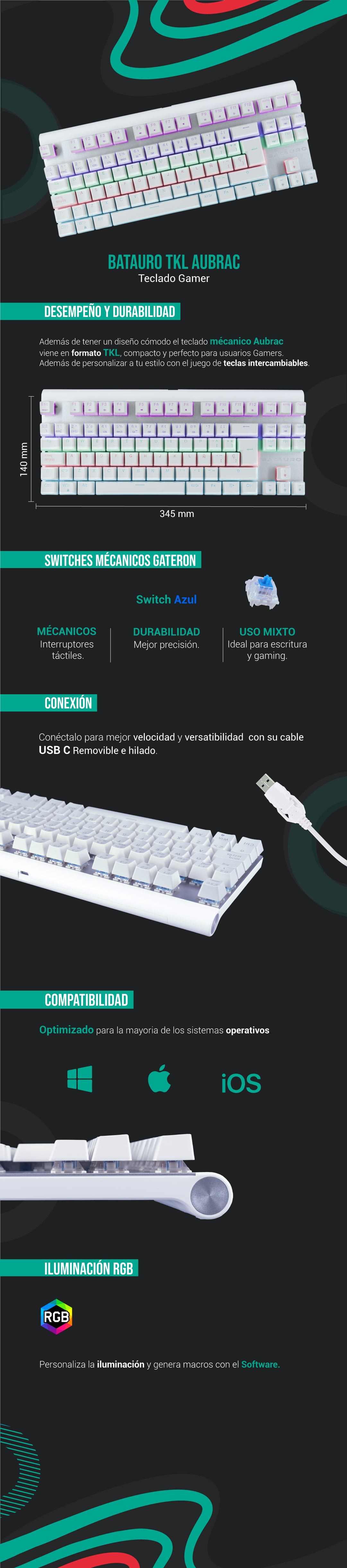Aubrac - Teclado Gamer Batauro TKL Mecánico Switch Blue / Blanco
