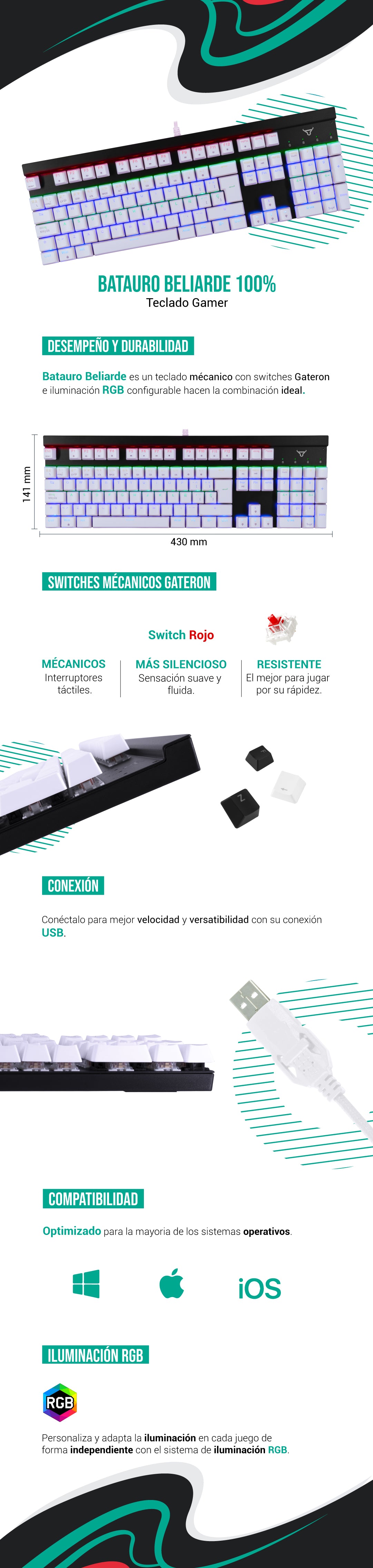 Beliarde - Teclado Gamer Batauro Mecánico Switch Blue / Blanco
